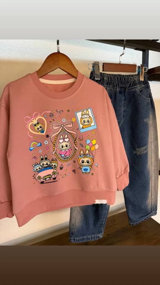 ست بچه گانه جنس بلوز دورس اعلا شلوار لی گرم بالا